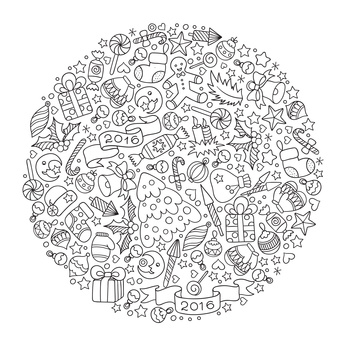 Pattern for coloring book. Christmas hand-drawn decorative elements in vector. Christmas ball from Christmas decorative elements. Black and white pattern. Zentangle Doodles style.